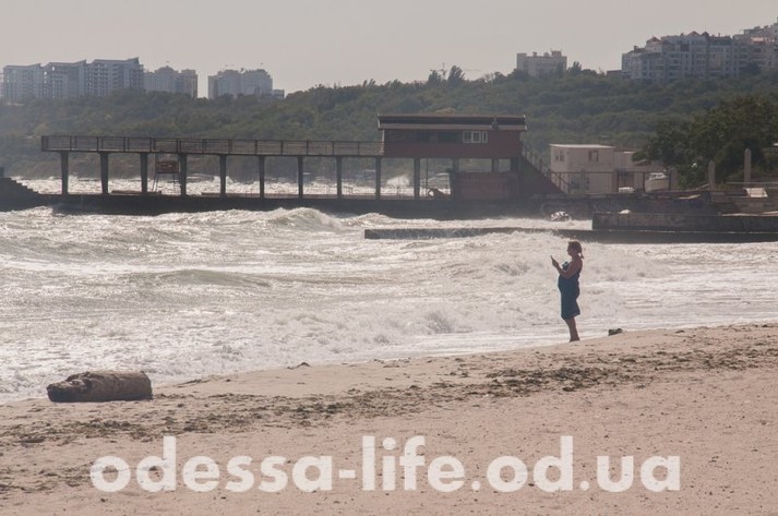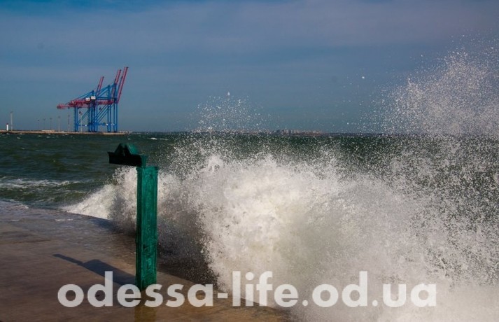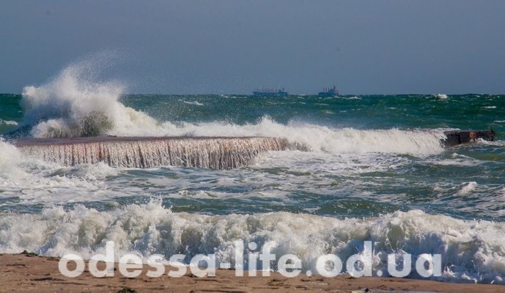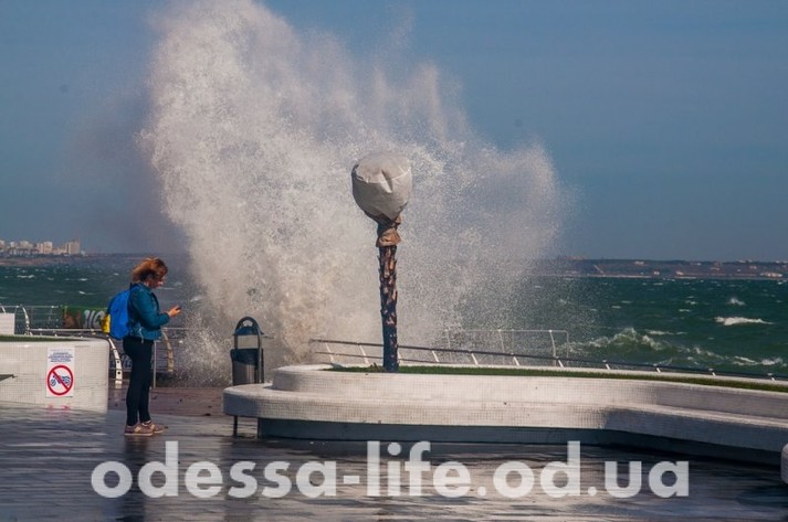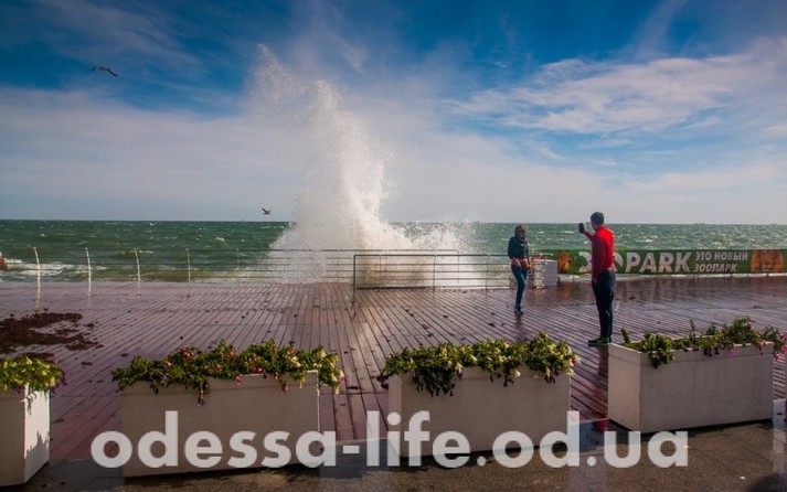 В Одессу пришло осеннее похолодание, на море бушевал сильный шторм.