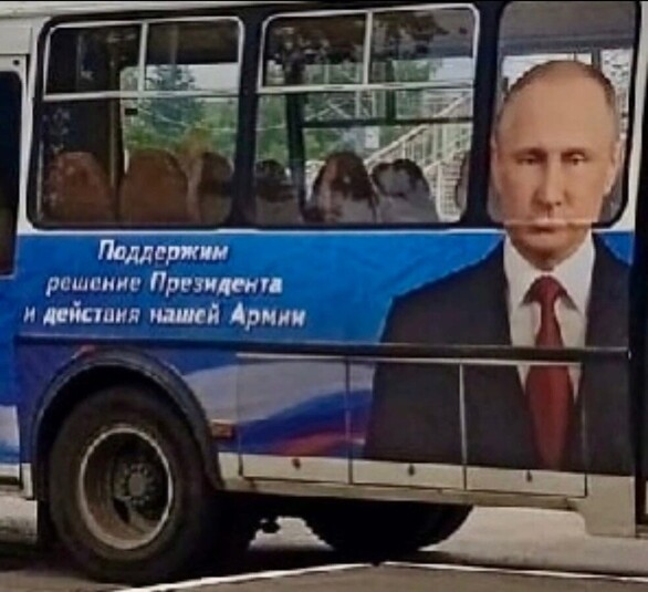 Один из рейсовых автобусов, ездящий по маршруту Калуга-Воротинск, оклеили портретами президента России.