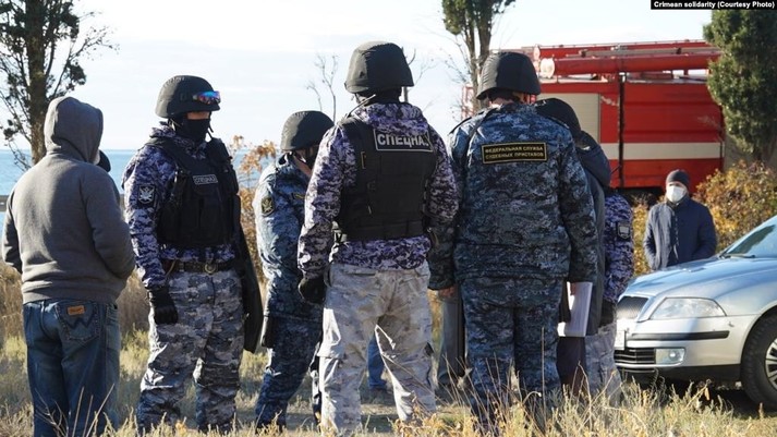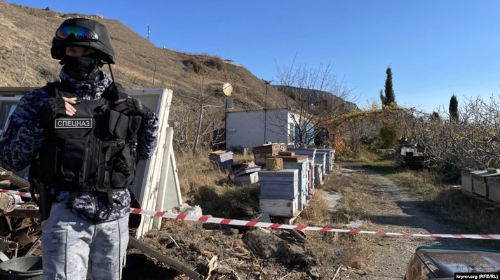 К его дому утром приехали российские судебные исполнители и около 20 сотрудников ОМОНа, полиция, пожарный автомобиль, скорая помощь, представители службы электроснабжения, подогнали также экскаватор. Самому Усеинову стало плохо, его увезла скорая помощь.