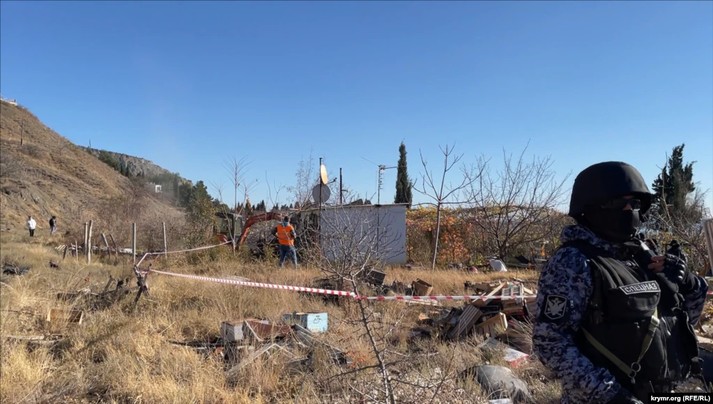 Снос строения начали в присутствии российских полицейских, судебных исполнителей и сотрудников ОМОНа. Личные вещи из дома вывезли.