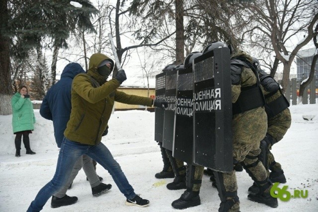 Российские СМИ сообщают, что в военной комендатуре Екатеринбургского гарнизона прошло показательное мероприятие для юнармейцев. Военные дважды показали школьникам, как происходит разгон митинга.