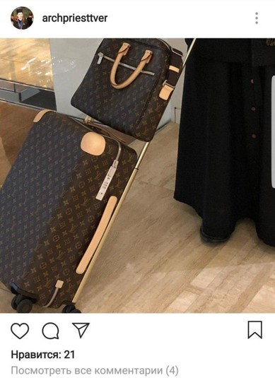Первое, о чем думаешь, когда видишь такое фото - дорогая сумка, гармонирующая с туфлями, а лишь только потом обращаешь внимание на название аккаунта в Instagram. Оказывается, это персональная страничка заведующего Тверской епархиальной научной библиотекой, председателя Комитета им. К.П. Победоносцева протоиерея Вячеслава Баскакова.