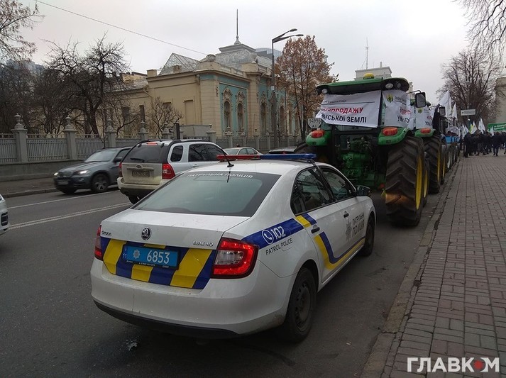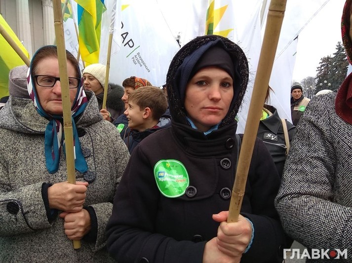 Аграрии, которые требуют не трогать землю, блокируют подход в Раду, но пропускают прохожих.