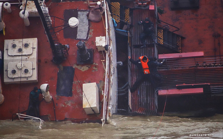 Сначала для эвакуации пытались использовать надувную лодку и водный скутер, но помешали волны, и водолазы отправились вытаскивать моряков вплавь.