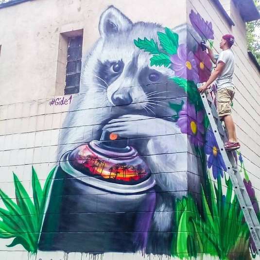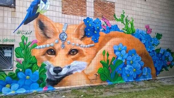 Киевский художник Виталий Гидеван создал мурал с изображением енота по ул. Евгения Коновальца, 37, на стене теплопункта. Он же на стене старой бойлерной на Виноградаре (пер. Квитневый, 6) нарисовал лису-модницу, а на техздании по бул. Леси Украинки, 28-а – целый зоопарк из зверей.
