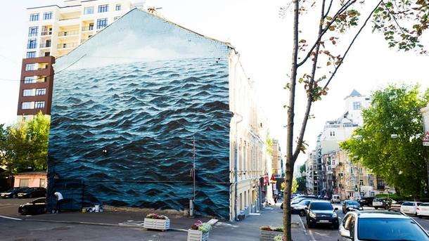 На стене здания на улице Бульварно-Кудрявская, 35 появился мурал «Украинское Черное море». Его создал художник из ЮАР Джейк Айкман.