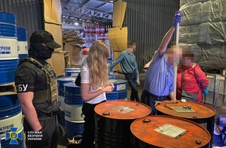 Во время обысков сотрудники СБУ обнаружили более 27 тонн российских смазочных масел, которые находились в емкостях с маркировкой российской корпорации. Стоимость изъятой продукции составляет около 10 млн грн.