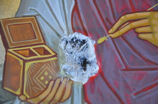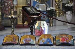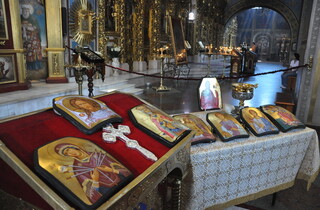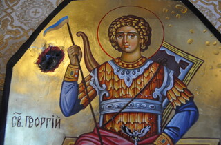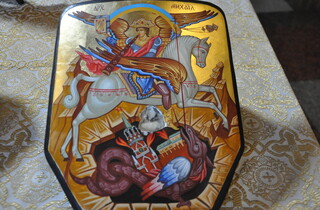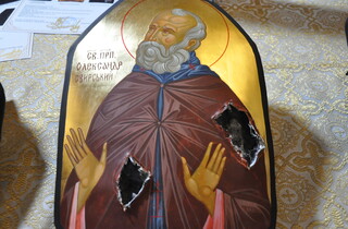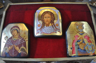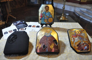 Как отмечается, иконы написаны на бронеплитах от бронежилетов, поврежденных вражескими пулями, но они сдержали их и спасли жизнь украинским защитникам. Освящение состоялось в Михайловском Златоверхом монастыре.