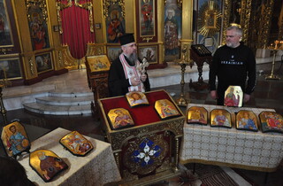Сдержали вражеские пули: Епифаний освятил 12 икон, написанных на бронеплитах (фото)