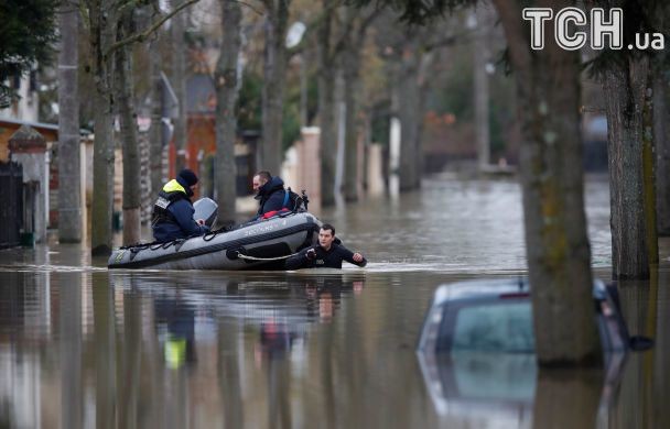 В пригороде Парижа тоже страдают от большой воды. Улицы городка Вильнев-Сен-Жорж буквально превратились в реки. Жители на лодках вывозили личные вещи из затопленных домов, ведь машины находятся в воде.