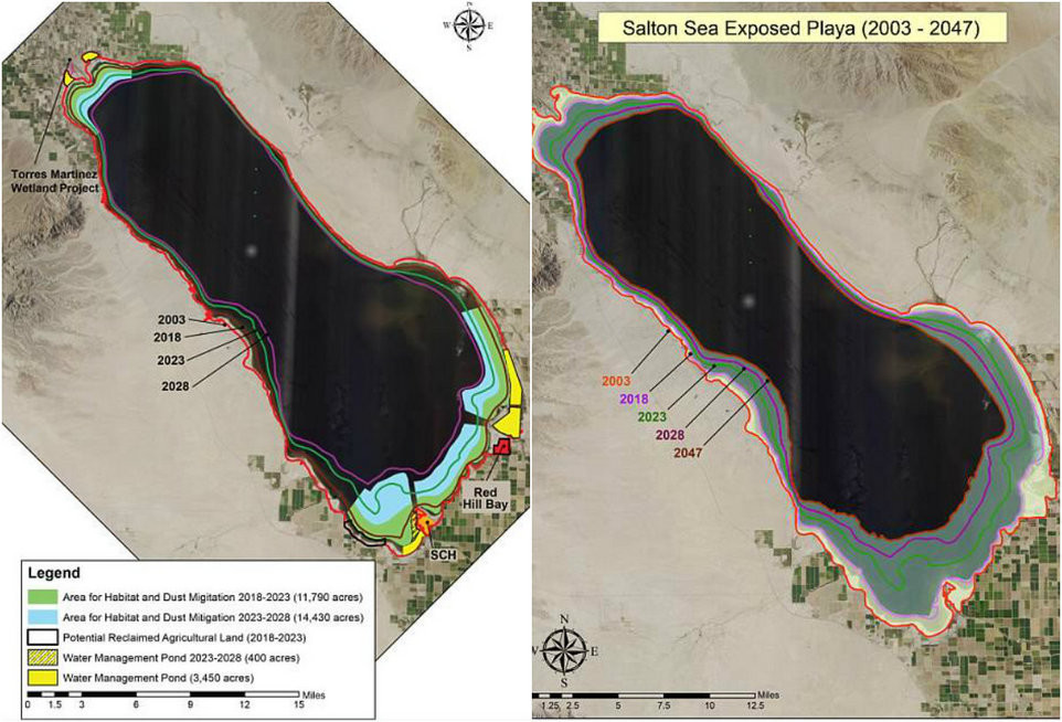 У озера появилось ряд проблем: не было никакого способа для очистки сточных вод, загрязненных пестицидами из близлежащих ферм. Это привело к увеличению уровня соли в воде, что сделало его более соленым, чем Тихий океан. Кроме того, площадь озера стала сокращаться, обнажая береговую линию покрытую токсичной пылью, которая вызывает проблемы со здоровьем.