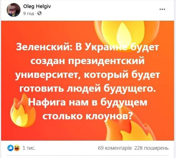 Инициатива Владимира Зеленского, который объявил о создании Президентского университета, вызвала шквал юмора в социальных сетях. Также от интернет-шутников досталось и внештатному советнику руководителя Офиса президента Украины Тимофею Милованову, который предложил бизнесу «взять бюджет любой школы или университета, умножить его на 2, и дать половину».