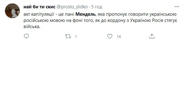 Пресс-секретарь Владимира Зеленского Юлия Мендель заявила, что «украинский русский язык является частью культурного разнообразия Украины».