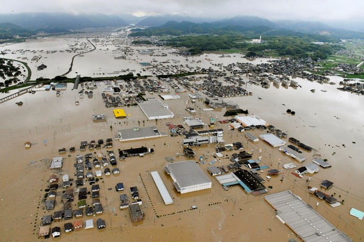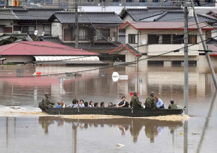 Проливные дожди в Японии спровоцировали выход рек из берегов и вызвали сильные наводнения. Не менее 100 человек погибли и более 80 пропали без вести. Более 2 миллионов жителей были эвакуированы из своих домов.
