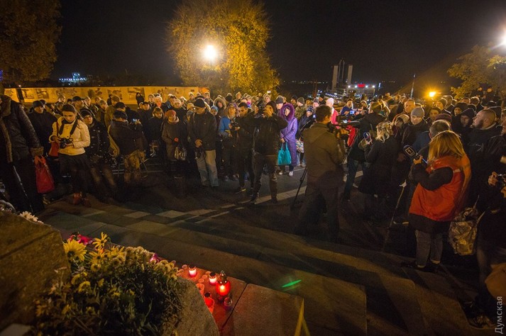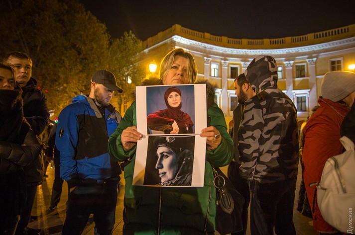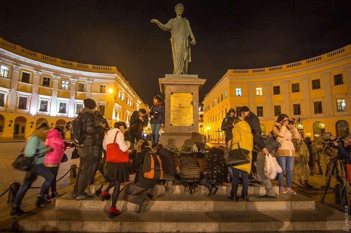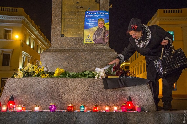 В Одессе возле памятника Дюку почтили память землячки, участницы АТО Амины Окуевой, погибшей 30 октября от пули убийцы.