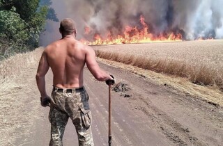 Сгоревший хлеб очень расстраивает аграриев, прилагающих много усилий, чтобы вырастить зерно. Однако фермеры отмечают, что враг хоть и пытается уничтожить урожай, но веру в победу так легко уничтожить не удастся.