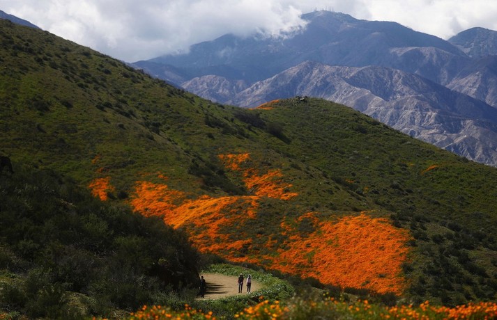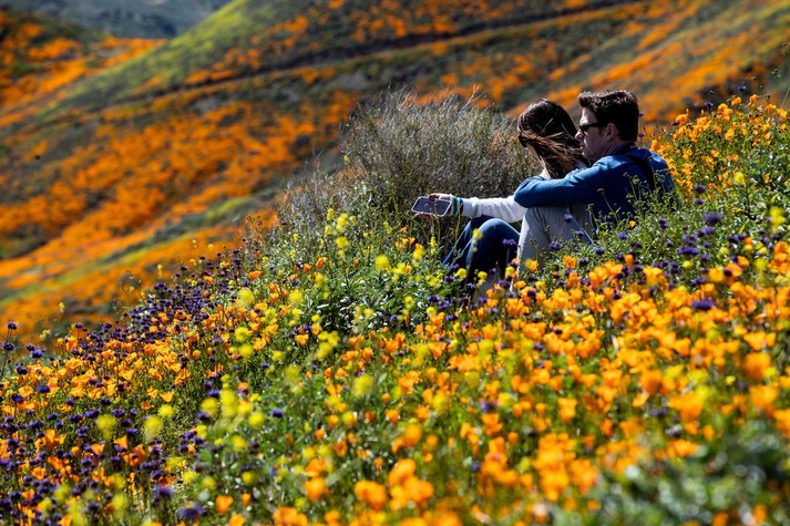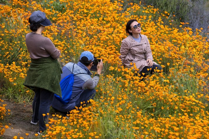 Калифорнийский городок Лейк-Элсинор переживает массовое нашествие туристов, которые спешат увидеть цветущую маками пустыню.