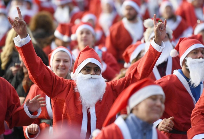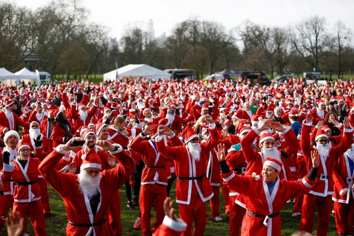 В этом году около 7 тысяч Сант бежали по улицам города, чтобы собрать деньги на благотворительность. В лондонском забеге приняли участие до 4 тысяч человек.