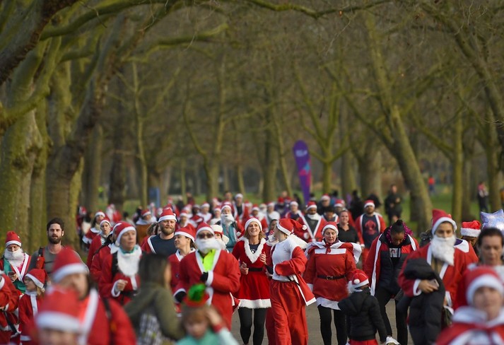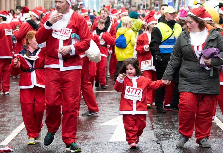 Тысячи бегунов вышли на улицы Глазго и Лондона, чтобы принять участие в ежегодном Рождественском пробеге Santa Run 2019.