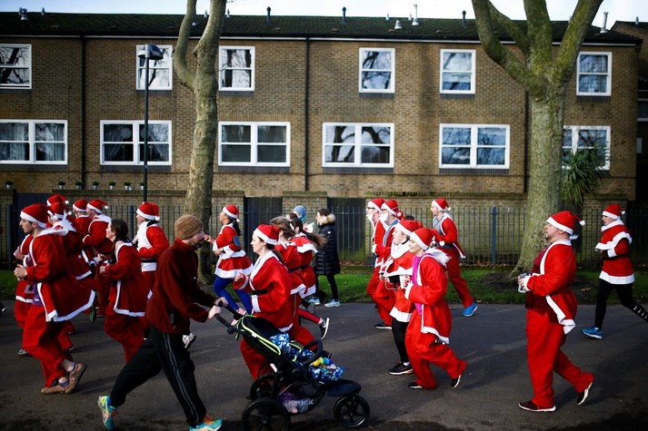 Тысячи британских Санта Клаусов приняли участие в благотворительном Рождественском пробеге
