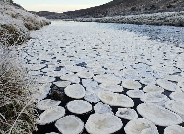Уникальное явление: «ледяные блины» в шотландской реке
