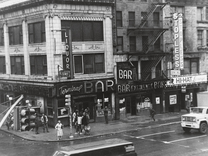 Бар «Терминал», стоявший через дорогу от автобусной станции Портовое управление, недалеко от площади Таймс-сквер, был известен как самое суровое питейное заведение Нью-Йорка. Репутацию это место завоевало благодаря своим завсегдатаям – сутенёрам, проституткам, бродягам, игрокам, трансвеститам... Десять лет посетителей «Терминала» фотографировал Шелдон Надельман, проработавший в нём барменом в 70-80-е годы.