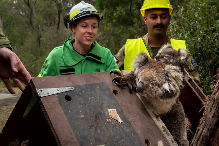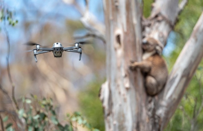 Сотрудники викторианской службы лесной и дикой природы, с помощью Австралийских сил обороны, используют беспилотные летательные аппараты и инфракрасные технологии в поисково-спасательной операции коал, пострадавших от недавних лесных пожаров.