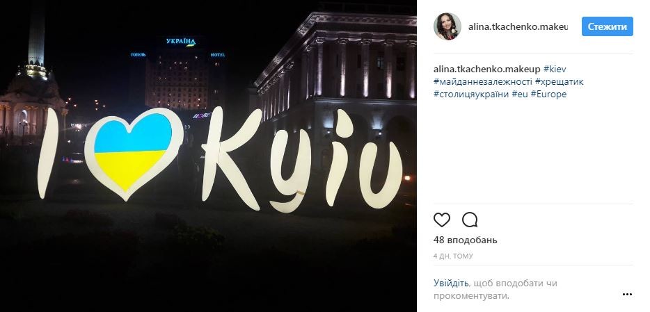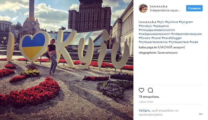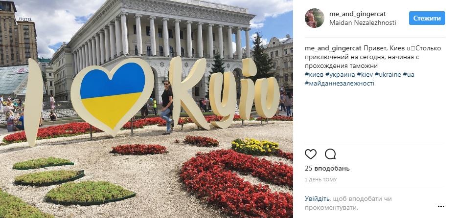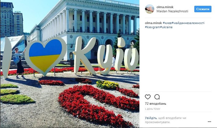 В центре Киева на Майдане Незалежности на клумбе, где ранее туристы могли любоваться надписью «Eurovision», появилась огромная «I love Kyiv», где вместо английского «love» прохожих радует сердце сине-жолтого цвета.