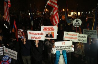 Накануне саммита Организации договора о коллективной безопасности (ОДКБ) в столице Армении Ереване прошли акции протеста, участники которой высказались против войны в Украине и за выход Армении из ОДКБ. Об этом сообщает Telegram-канал Sota.