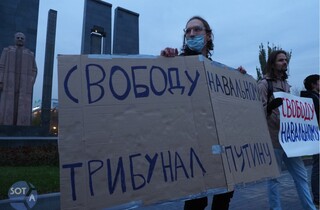 Протестующие держали в руках плакаты с лозунгами: «Путин, Лукашенко – персоны нон грата»