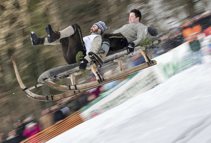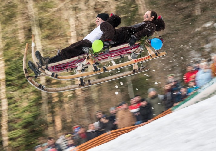 В Гайссах, Южная Германия, прошла ежегодная гонка на роговых санях Schnabler. В популярном мероприятии, которое привлекает сотни людей со всей Баварии, приняли участие тридцать два гонщика в ярких нарядах.