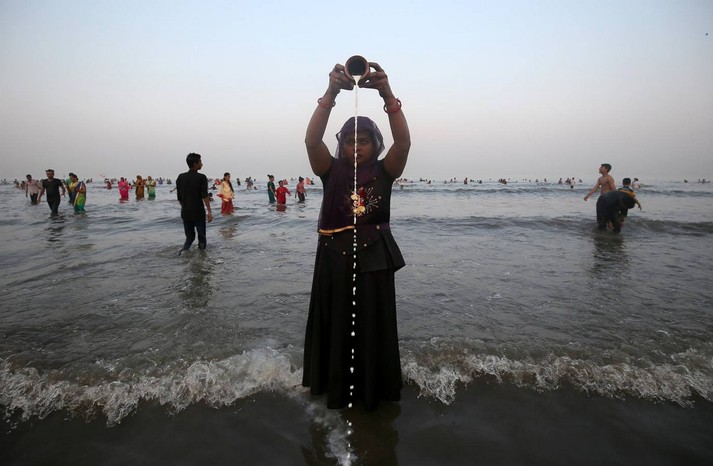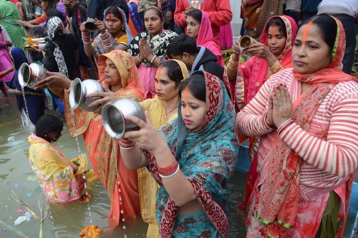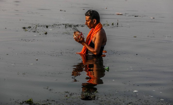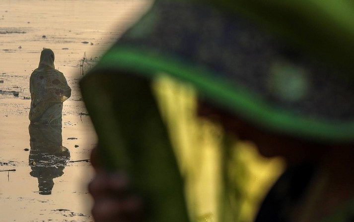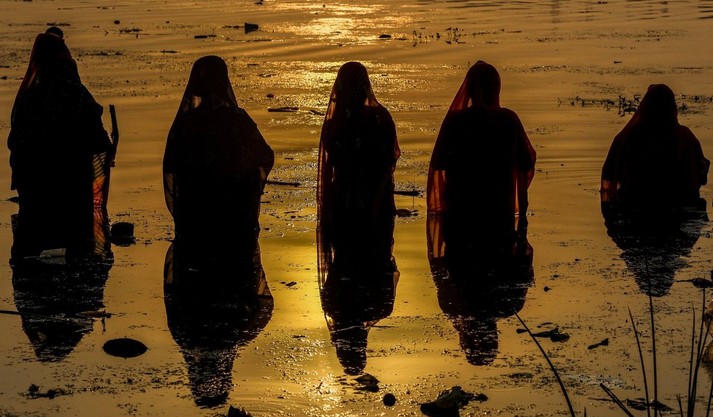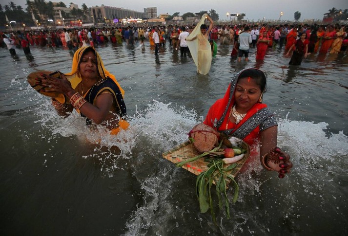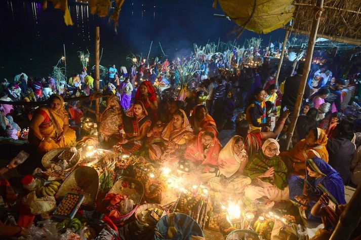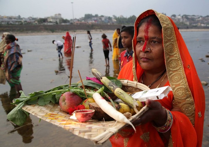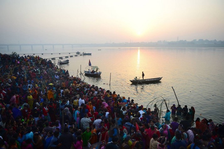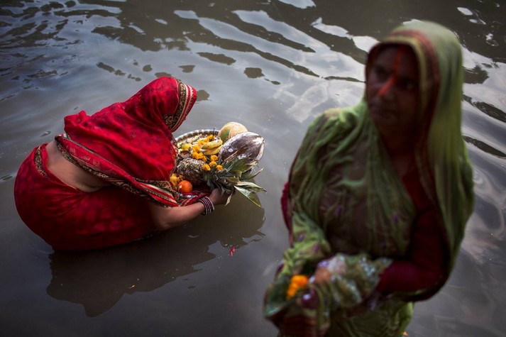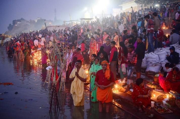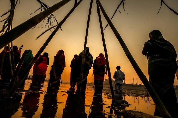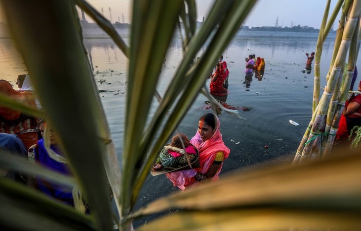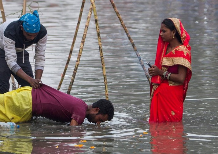 В Индии прошел фестиваль Чхат Пуджа, посвященный богу Солнца Сурье и его жене Уше. В празднике приняли участие сотни тысяч семей.