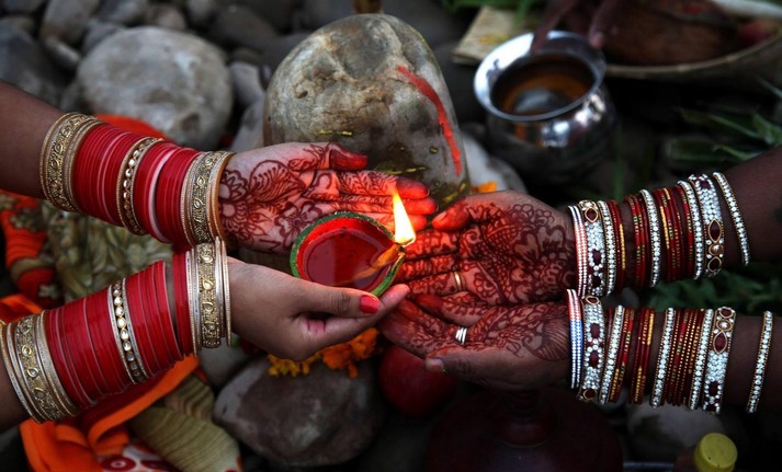По традиции в этот день индуистские женщины, стоя в воде, просят о благополучии, исцелении и исполнении желаний