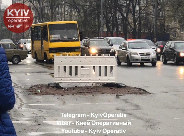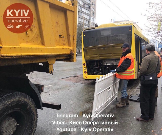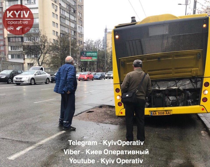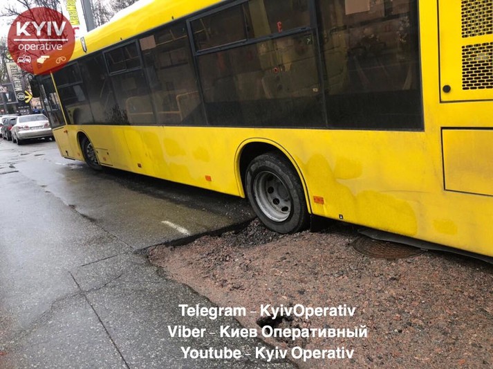 В Киеве автобус застрял в яме и не смог из нее самостоятельно выехать (фото)