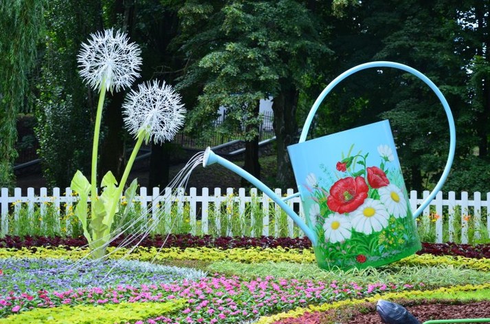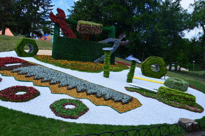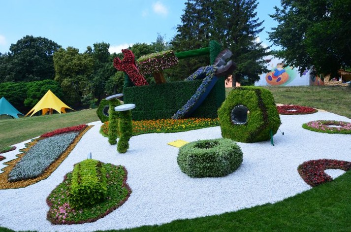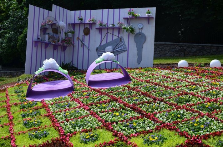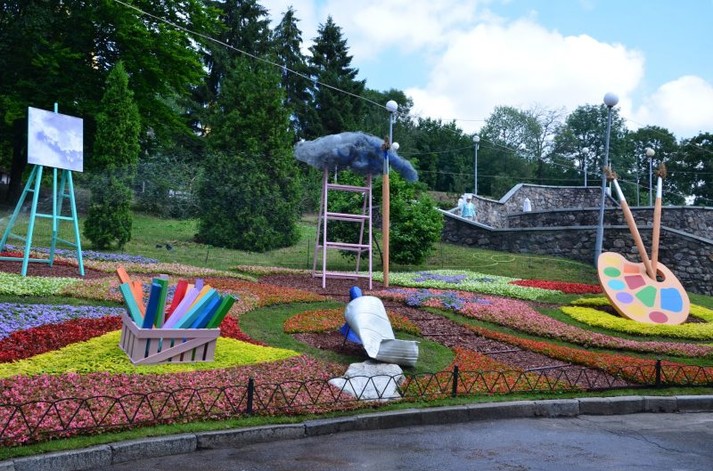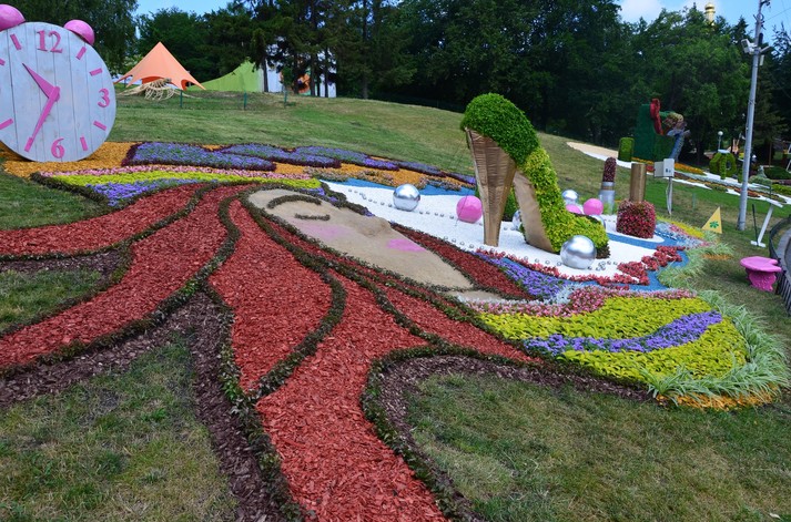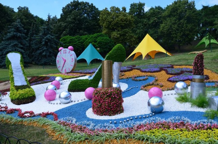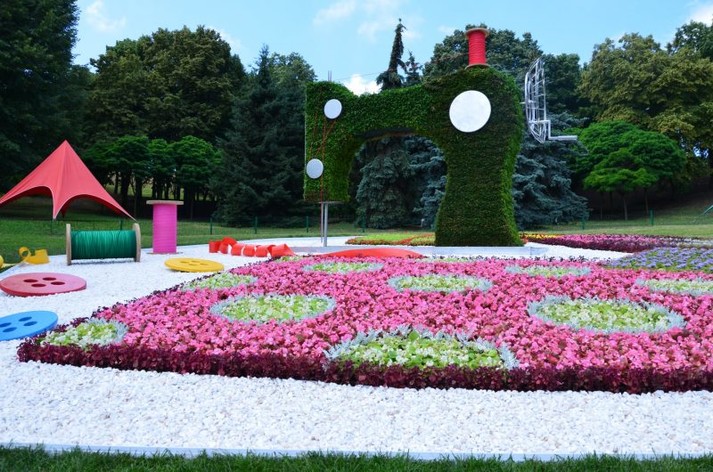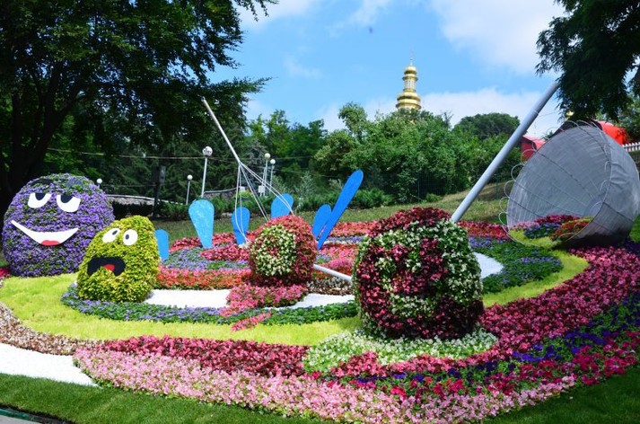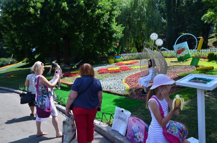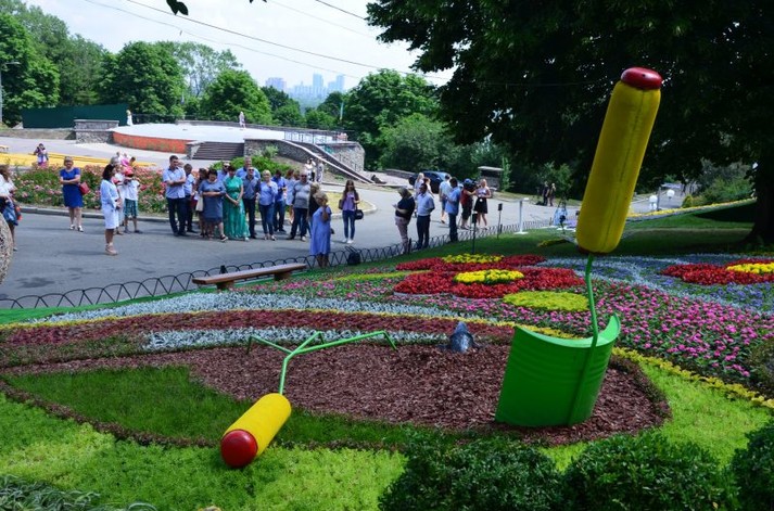 «В этом году на летней выставке цветов… посетители смогут себя почувствовать гостями мира Великанов, ведь в экспозиции - обычные предметы быта гигантского человека: от огромной палитры с красками, обуви до гигантской губной помады. А еще здесь можно сделать на память яркие фото на фоне сладостей огромных размеров», - рассказала и.о. генерального директора коммунального объединения «Киевзеленстрой» Наталья Белоусова.
