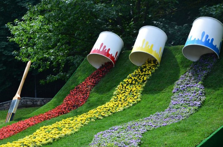 В этом году дизайнеры создали из 245 тысяч цветов гигантские инсталляции различных предметов. Общая площадь композиций составляет более 2000 квадратных метров.