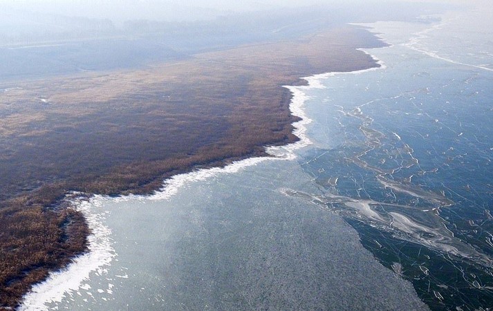 В Китае за ночь замерзло большое озеро площадью 300 квадратных миль