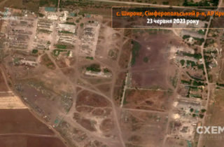 Спутниковый снимок за 23 июня свидетельствует, что новая база располагается в двух местах на территории села Широкое, которое в 25 километрах севернее Симферополя во временно оккупированном Крыму.