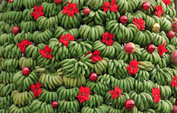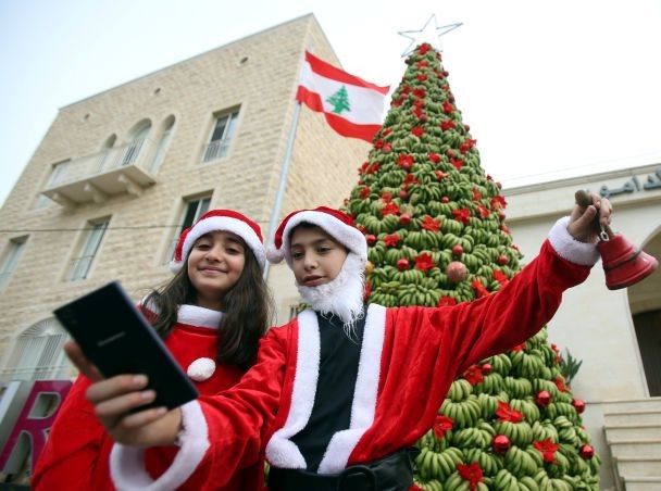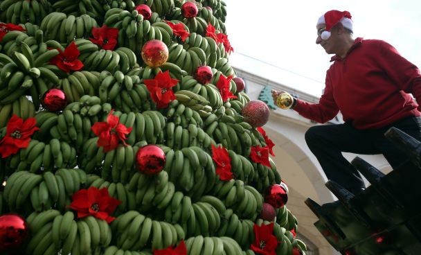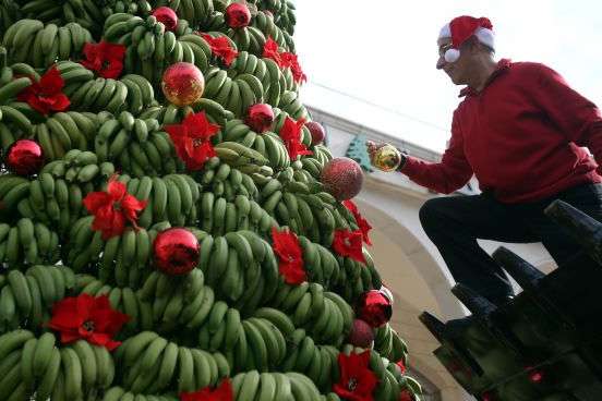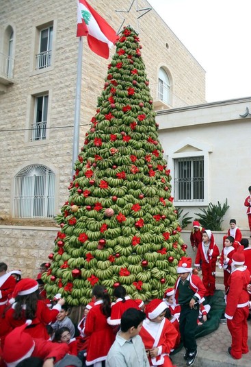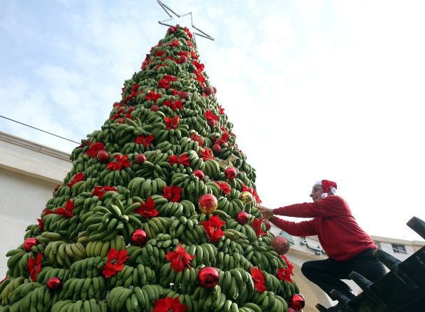 В городке Дамур в Ливане установили необычную новогоднюю елку, которую соорудили из бананов.