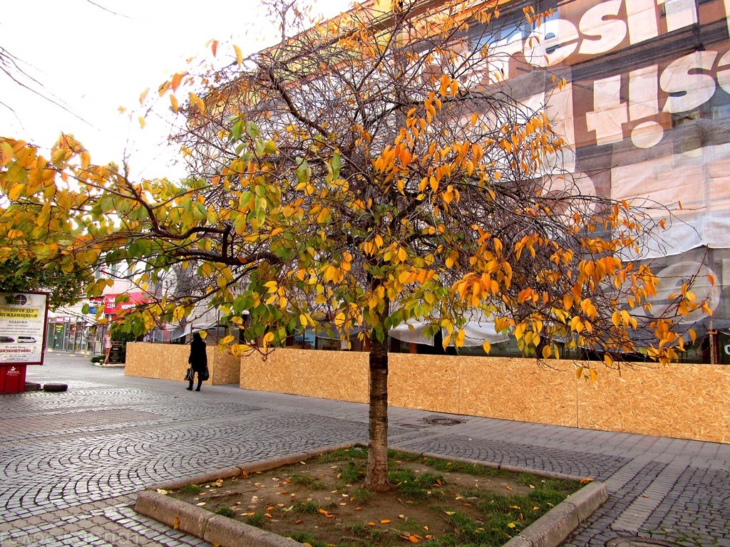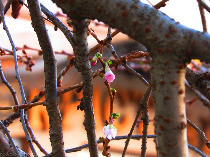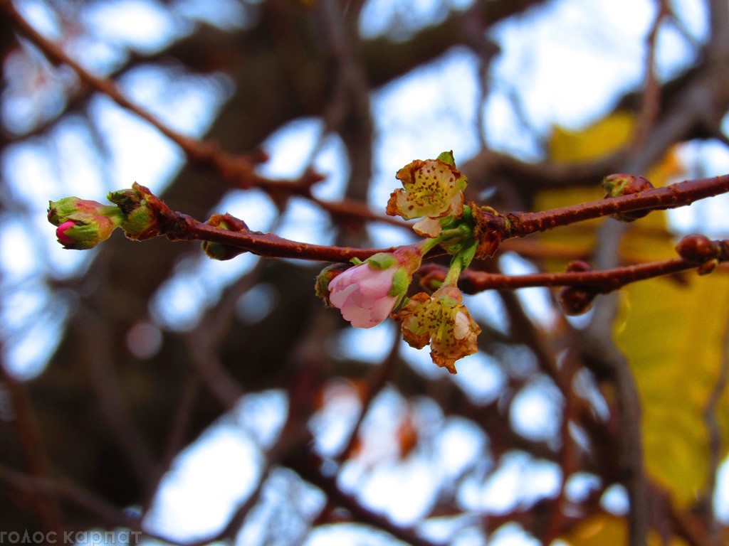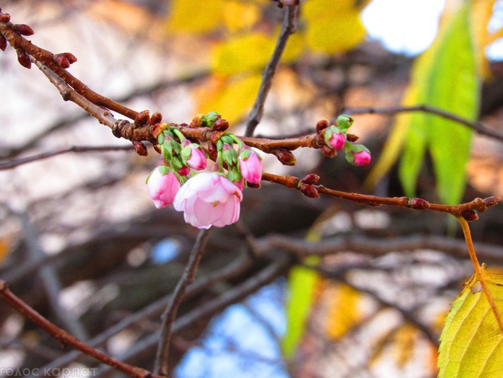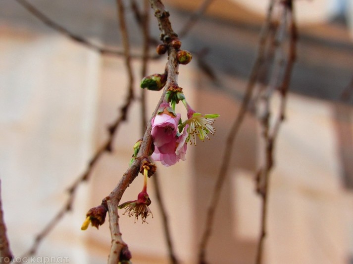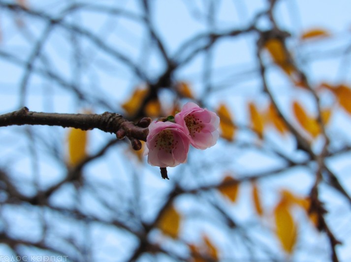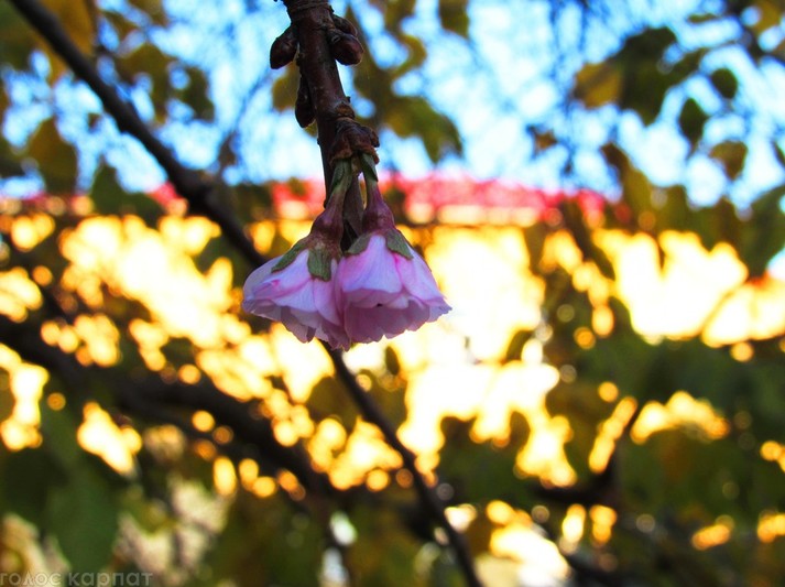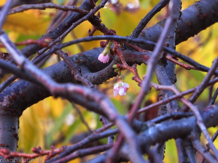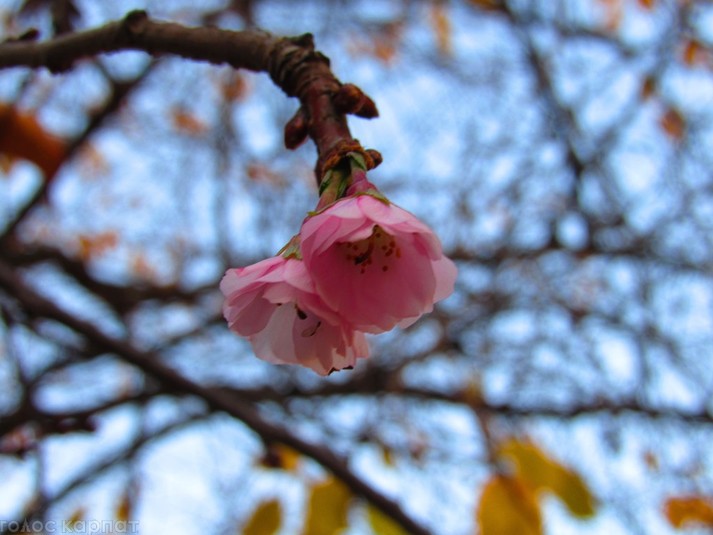 В центре Мукачево на площади Федорова неожиданно расцвела сакура.