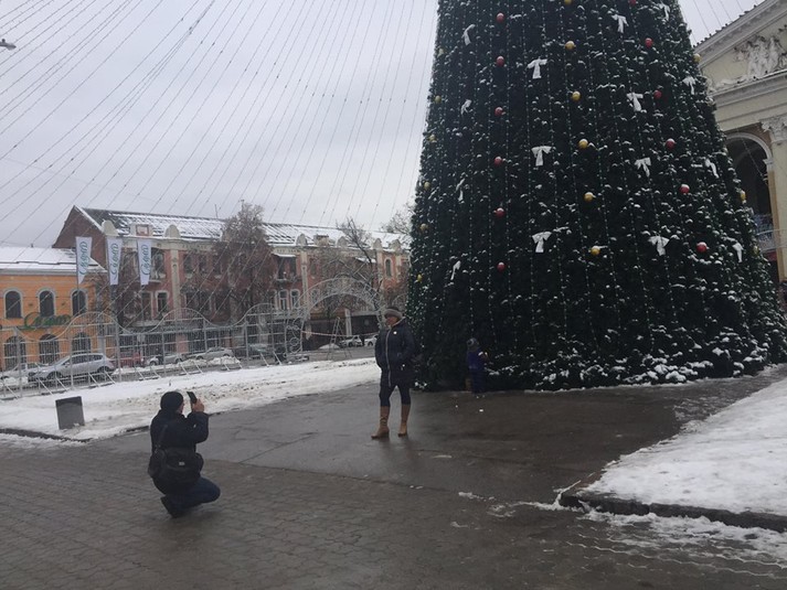 Включили иллюминацию главной елки Полтавы. Тестировали освещение