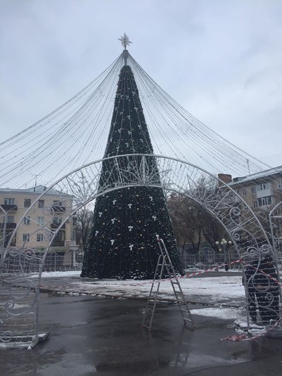 Электрическую часть на конструкции еще монтируют. Монтажник сообщил, что завтра должны установить композицию со скульптурами оленей, Деда Мороза. Будет также инсталляция с фонтаном Готовность объекта проверять в понедельник. А торжественное открытие запланировано, как и в прошлом году, в день святого Николая.