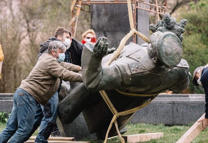 К примеру, в прошлом году разгорелся скандал накануне августовской годовщины вторжения войск Варшавского договора в Чехословакию, тогда статую облили красной краской. Российское посольство назвало это событие варварским актом и оскорблением памяти красноармейцев, павших в освобождении Чехословакии. Но власти города заявили, что не будут чистить памятник. В конечном итоге его отмыли неизвестные люди, которых мэр назвал «российскими троллями».