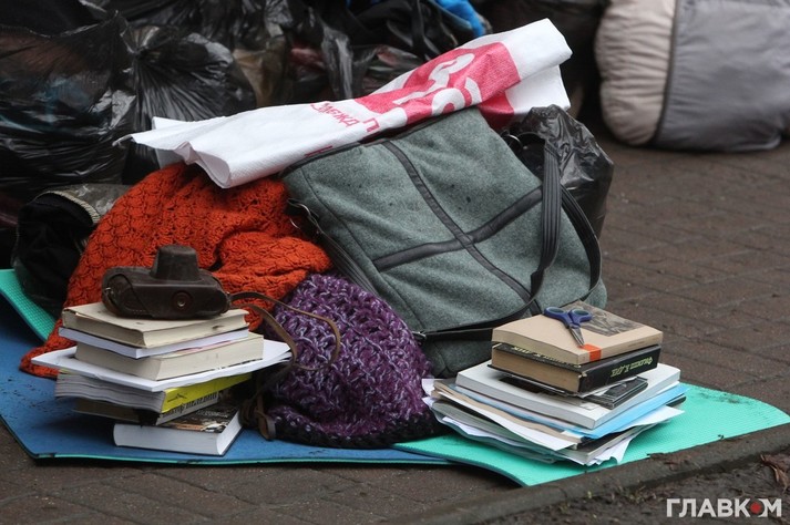 На улице Институтской в центре Киева жительница одной из квартир выбросила из окна собственные вещи. Об этом сообщает корреспондент «Главкома» с места события.