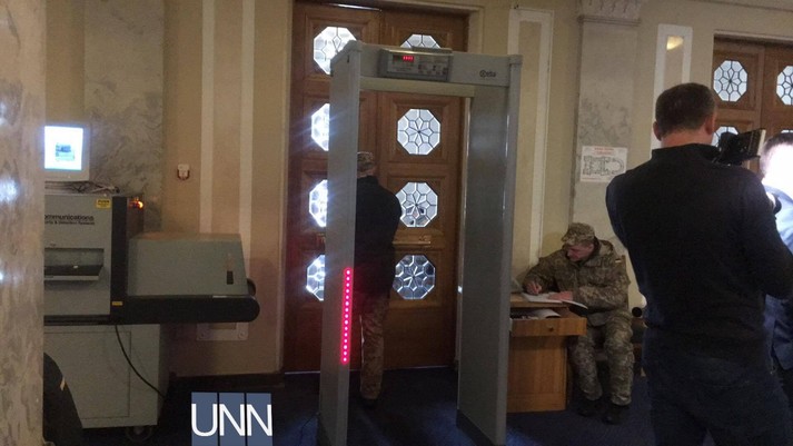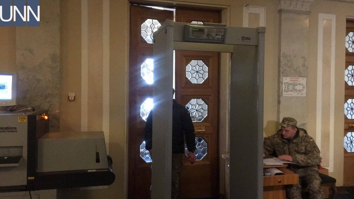 На входе в Верховную Раду, которым пользуются народные депутаты, установили металлоискатель и интроскоп для досмотра личных вещей.