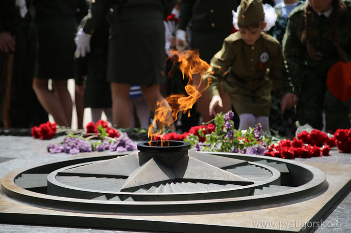В форме пехотинцев, танкистов, летчиков, моряков, артиллеристов и медсестер по площади у вечного огня промаршировали ряды воспитанников детских садов города.