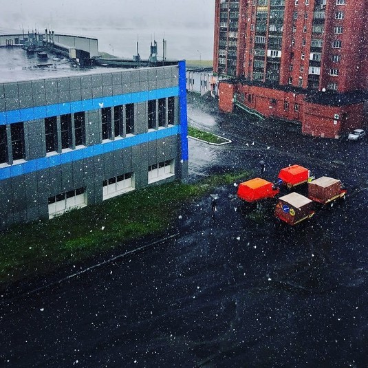 Как отмечаютместные СМИ, в городе дует пронизывающий ветер со стороны Северного ледовитого океана. Этот ветер и принес с собой мокрый снег.