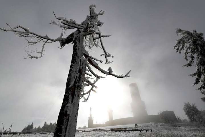 В сети появились зимние фотографии обсерватории «Белый слон» в Карпатах.