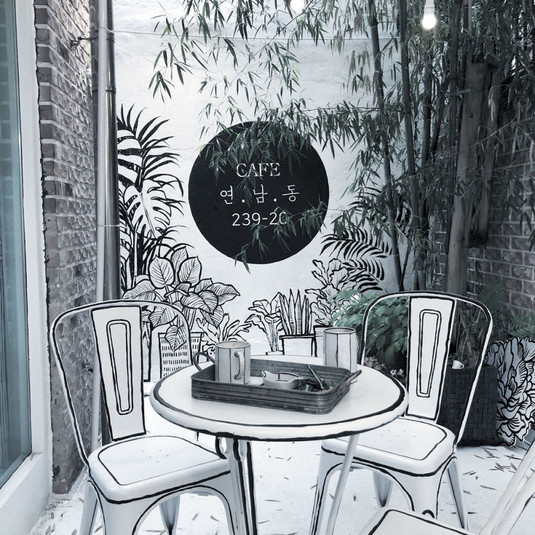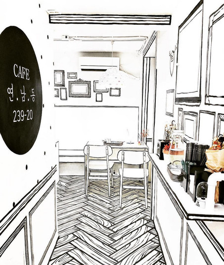 Кафе называется Yeonnam-dong 239-20 и находится в районе Йоннам-донг в Сеуле. Дизайнеры, работавшие над внутренней отделкой, вдохновились популярным корейским телесериалом «W», где главные герои могут пересекаться лишь в фантастическом мире веб-комикса.