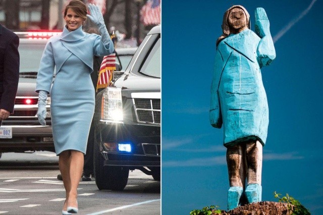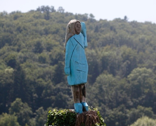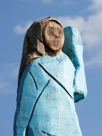 Деревянную статую первой леди США Мелании Трамп установили в Словении, а выполнили ее в жанре наивного искусства.